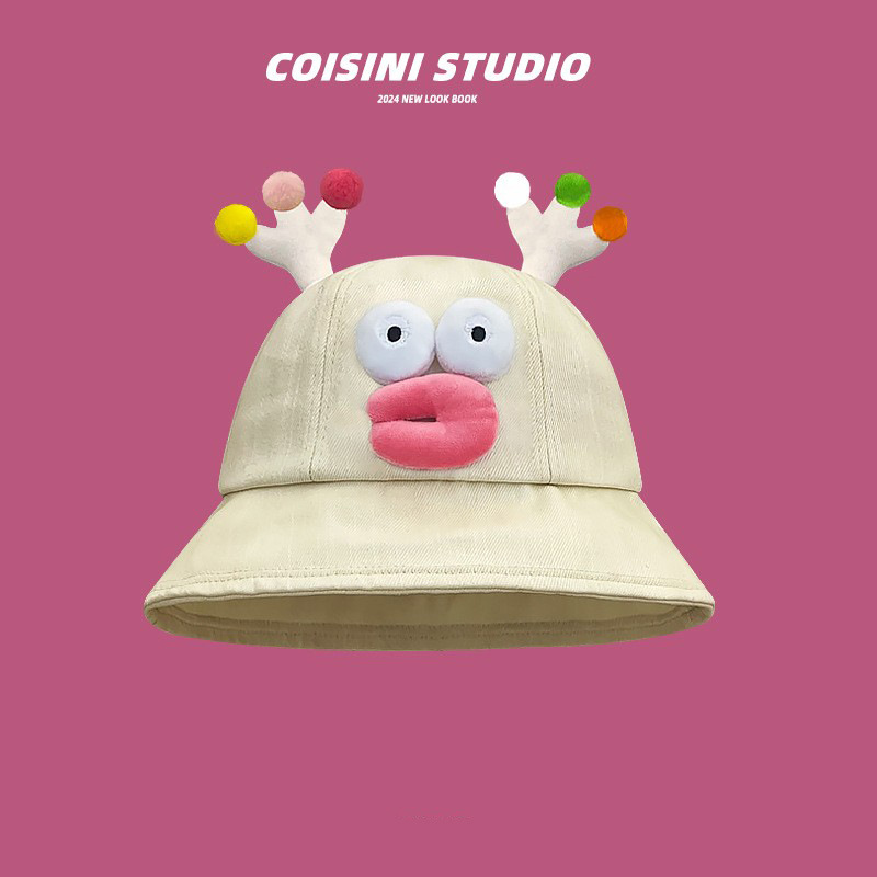 2024新型アニメかわいいソーセージ口漁師帽子供春秋醜い萌え日よけ日焼け止め百合学生盆帽