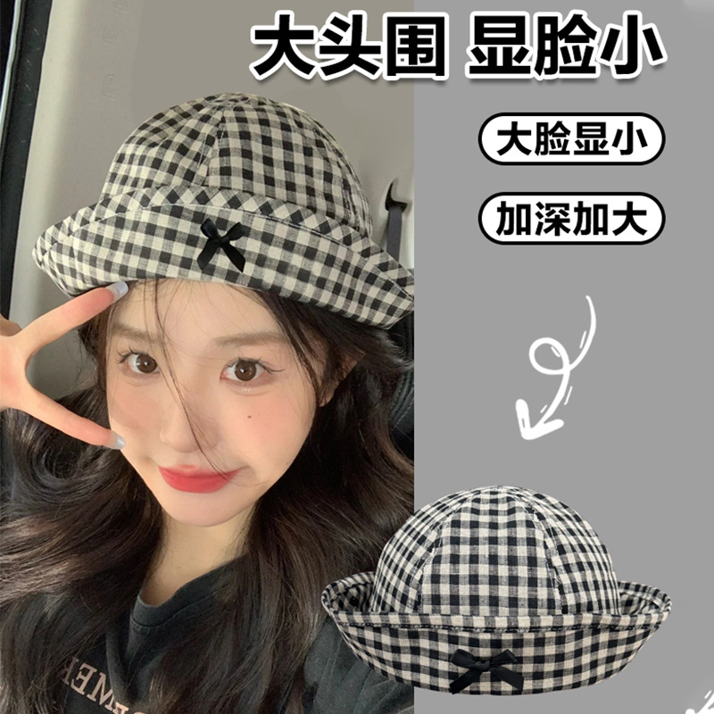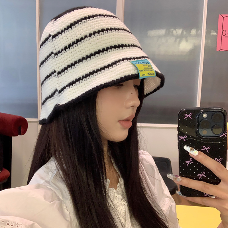Insストライプニット漁師帽女性夏2024新百合大頭囲顔小日焼け止め日除け盆帽
