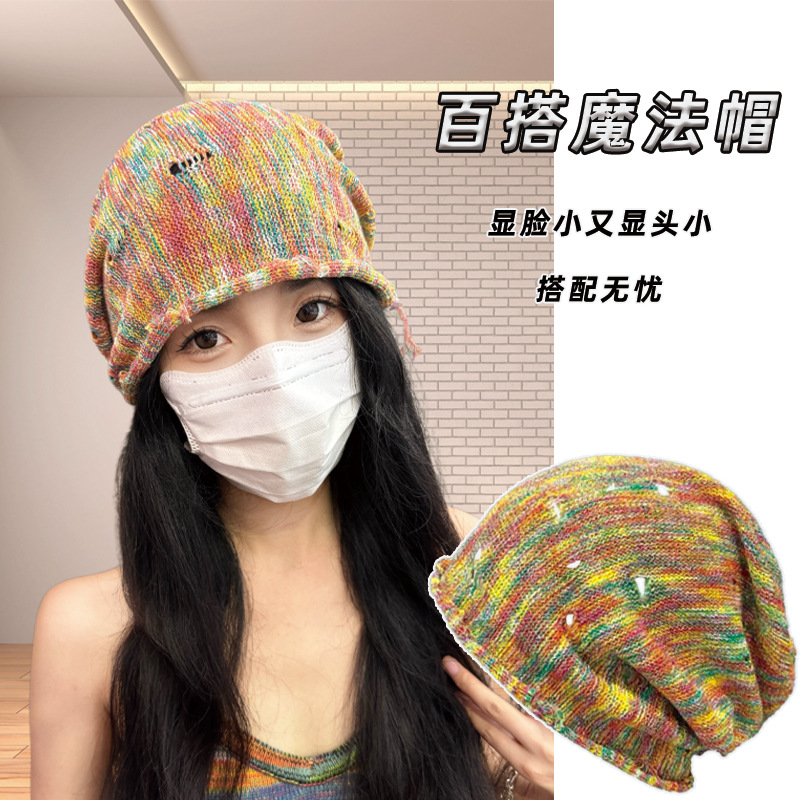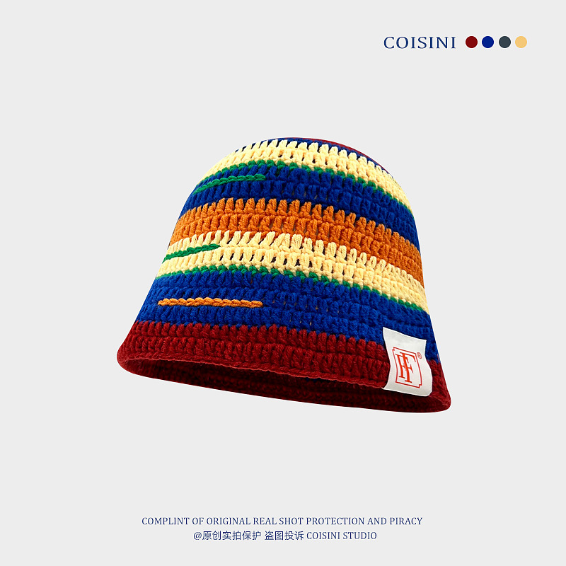 2024新型のカラードーパミンは色のストライプのニットの盆の帽子にぶつかります。