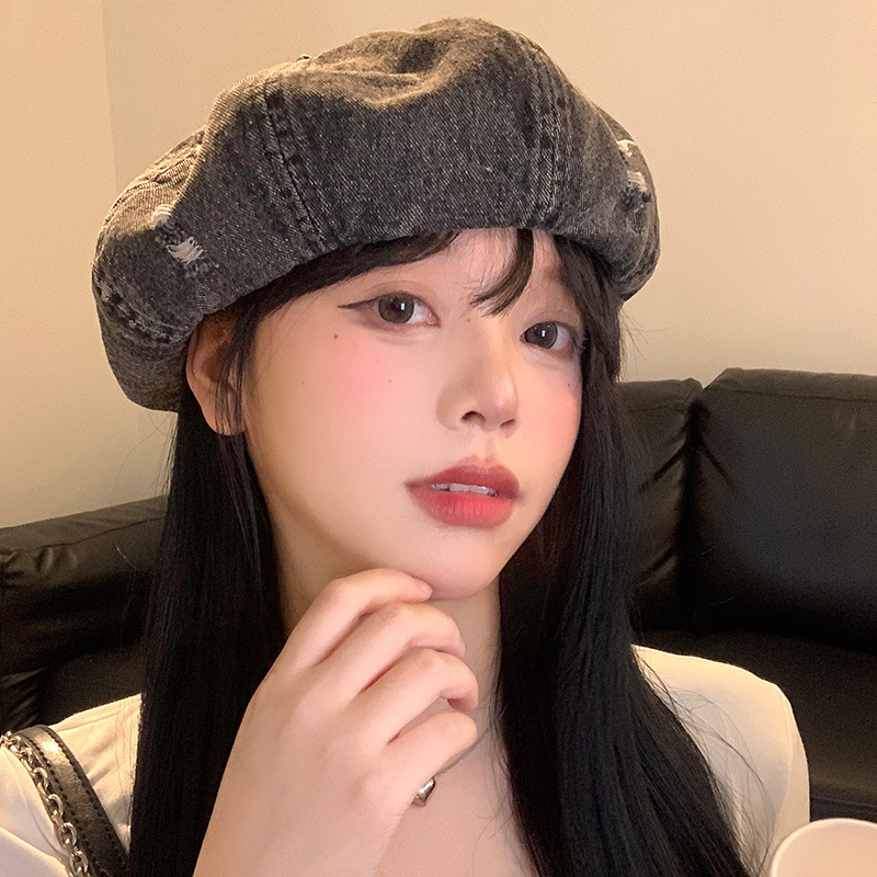 レトロにして古い穴を割ったデニムのベレー帽の女性の夏の子供の帽子の雲の八角の帽子の大きい頭の周りは顔の小さい帽子を現します。