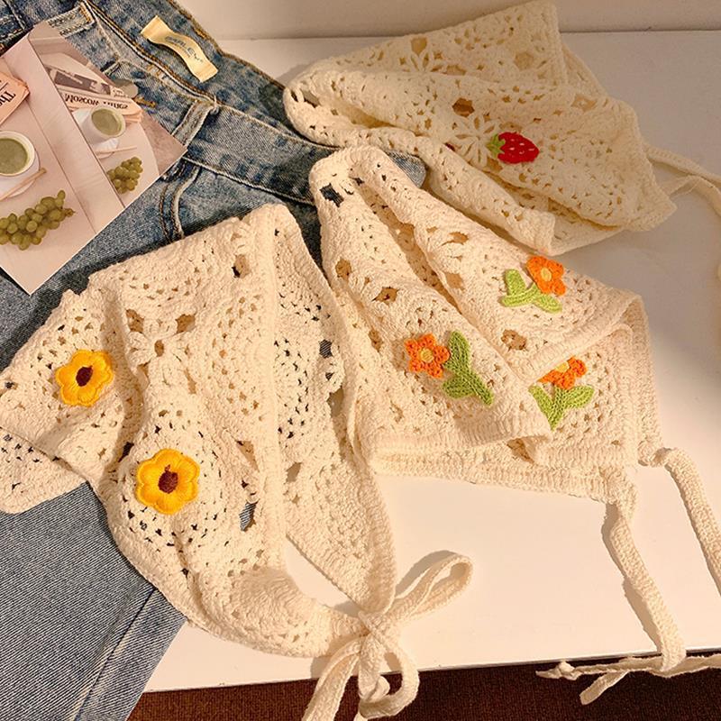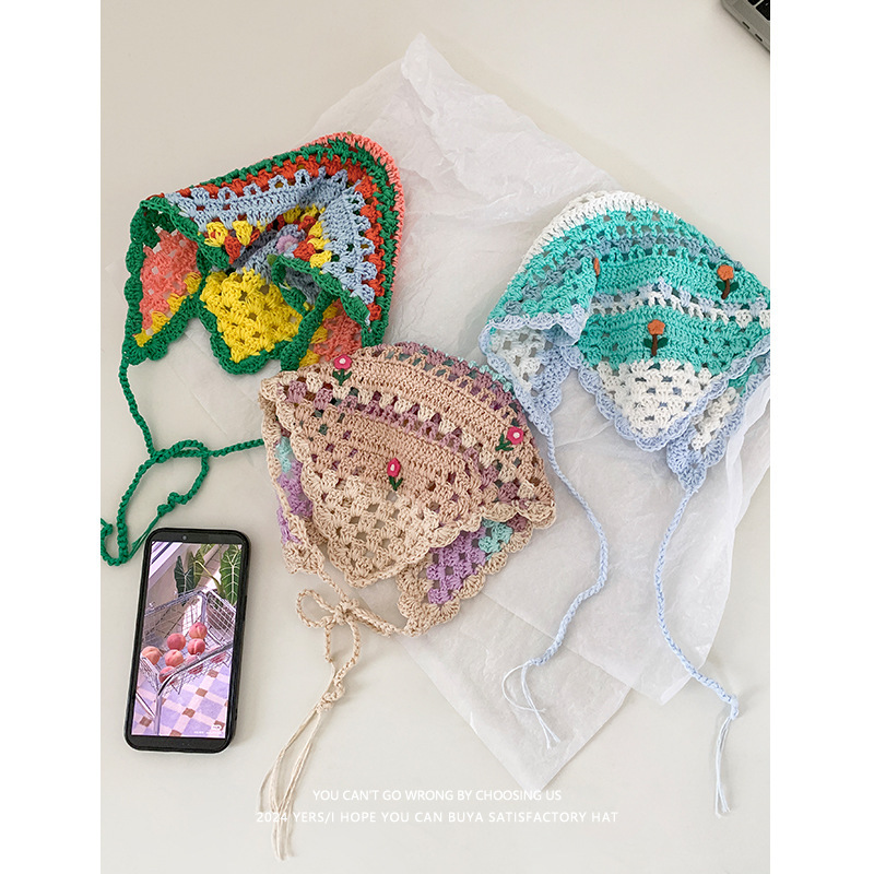 春秋旅行ins甘くてかわいい風の手作りのメリヤスの女性の個性のフックの花の文芸の風の三角のスカーフのスカーフ