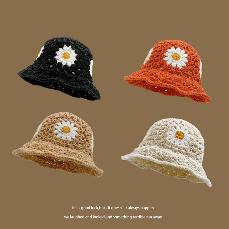 韓国の雅風の透かし彫りの花の手作りのニットの帽子の女性の秋冬の綿の糸は復古の盆栽の帽子を編みます。