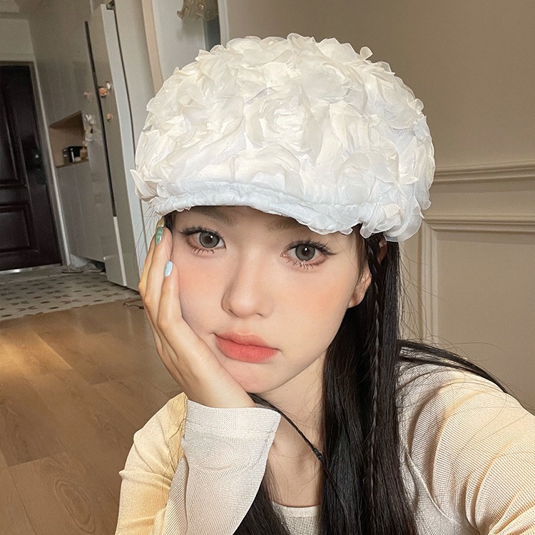 夏の薄いタイプのガーゼの立体のバラの前进の帽子の女性の2024の新型の小さい大衆の設計の高級感のベレーの帽子