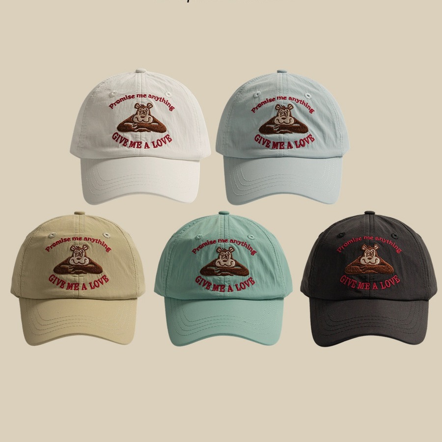 韓国版のかわいい洋気は伏せて熊のアヒルの舌の帽子の女性にうつ伏せになります。