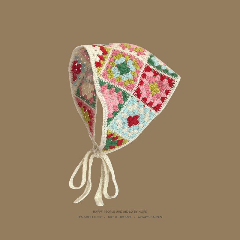 ベージュの田園風ニットの頭巾三角巾の女性の包頭フランスの海辺のかわいい髪飾りのヘッド飾りの2024新作