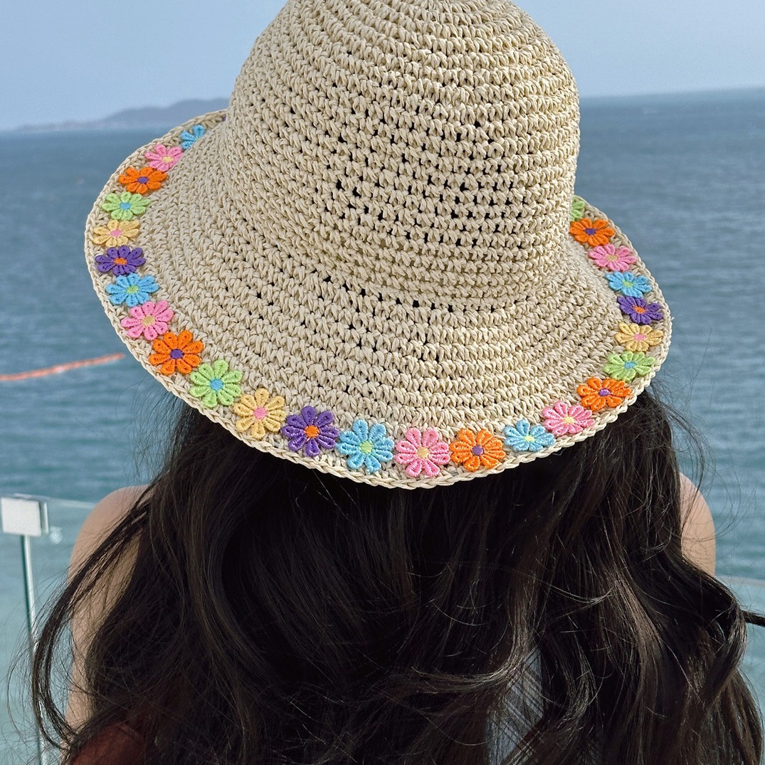 花の草は漁師の帽子の女性の春夏の通気性の日よけの帽子のバケツの帽子を編みます。
