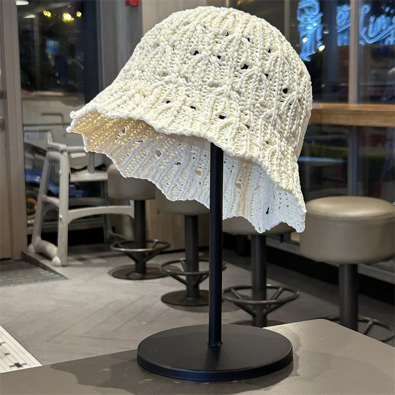 韓国の透かし彫りの通気性のある漁師の帽子の女性の夏のファッションは日焼け止めの日よけの帽子のデザイン感の波のつばのバケツの帽子を組み合わせます。