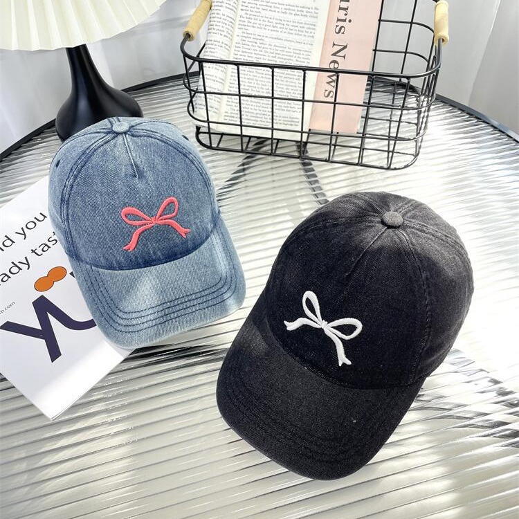 韓国版ins蝶結び刺繍鴨舌帽女2024春新作カウボーイ帽子顔小野球帽男