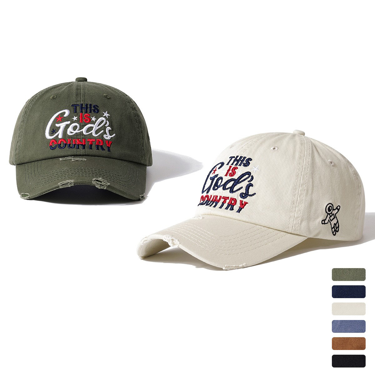 重工水洗いして古い穴を割ったヒップホップデニムの野球帽を作ります。