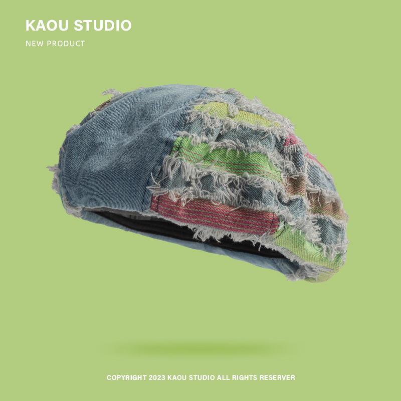 デニムのベレー帽の子供の韓国版の小さい大衆のカラーバーは古い画家の帽子をします。