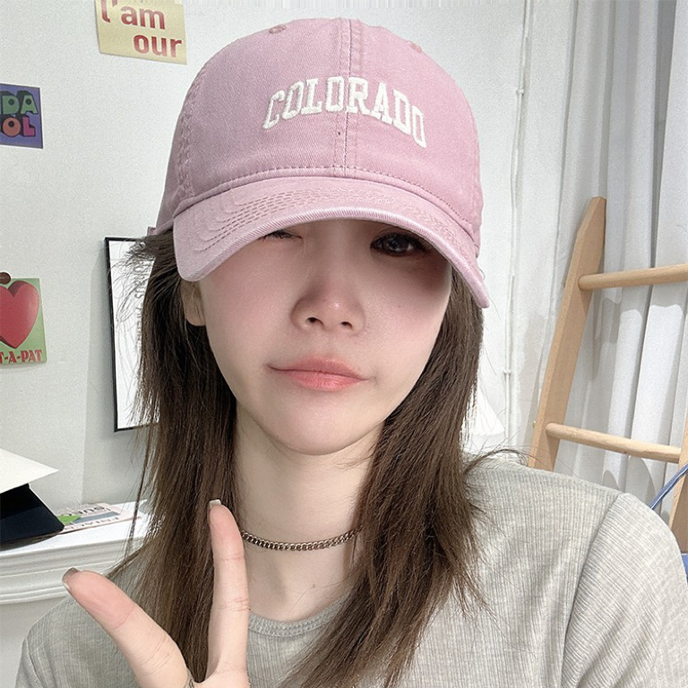 韓国版女性野球帽新型ひさし春夏カジュアルピンク鸭舌帽日よけ日焼け止め帽子顔小潮