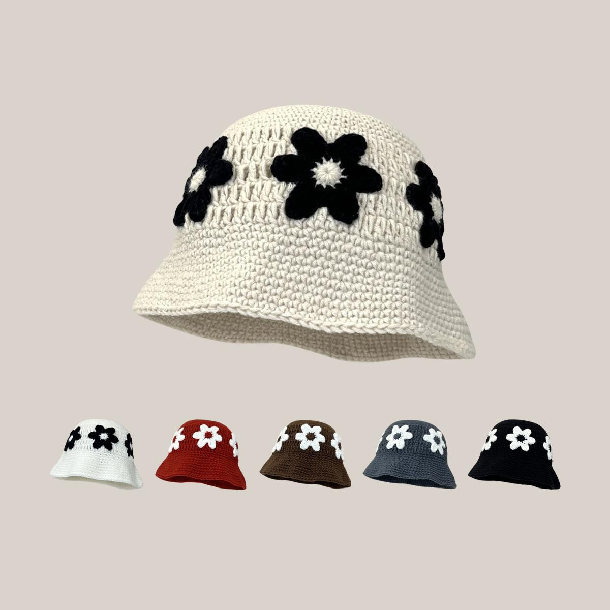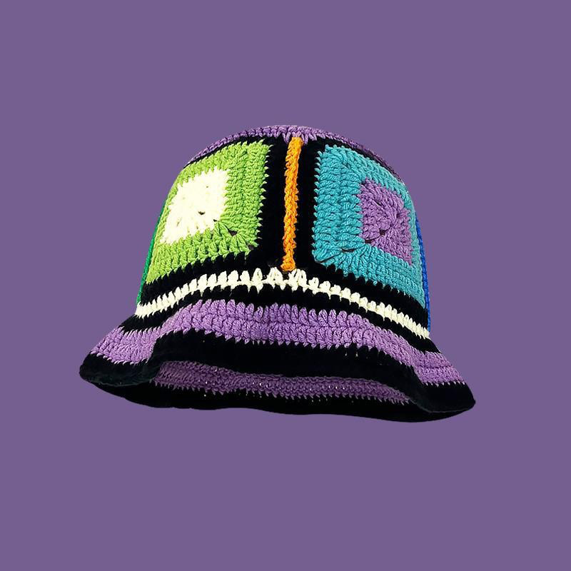 日系手編み衝突色ニット漁師帽子供ins潮人百合すっぴん顔小毛糸盆帽