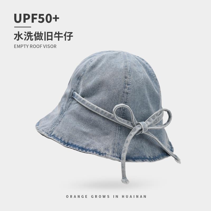 薄いタイプの水洗いデニムの漁師の帽子の女性のドームの夏の日よけは折り畳みができます。