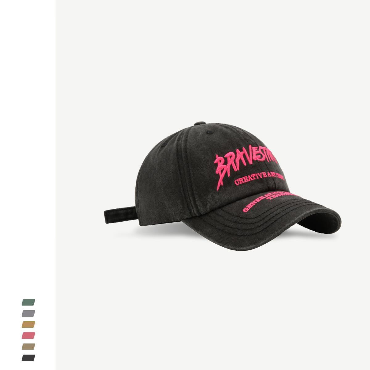 春夏韓国版カップル街頭潮牌アルファベット刺繍水洗いソフトトップ野球帽女顕顔アヒル舌帽子男