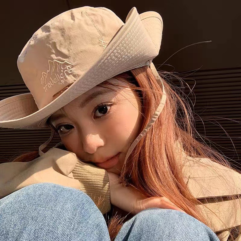 日系ひも引き日焼け止め漁師帽子男女夏通気アウトドアキャンプ登山釣り日除けカウボーイ帽
