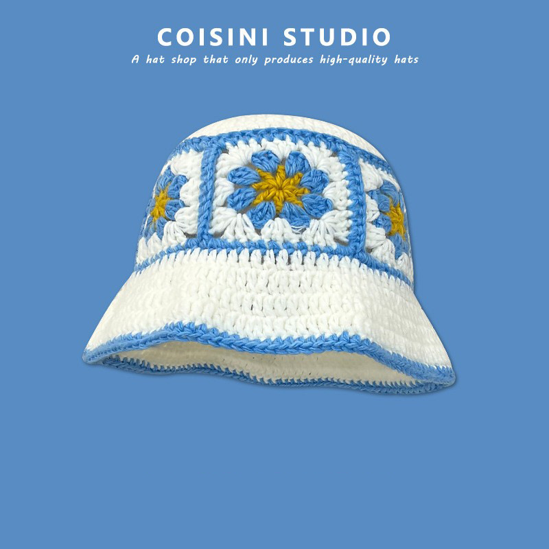 韓国の手作りのかぎ針の花は色の漁師の帽子の子供にぶつかります。