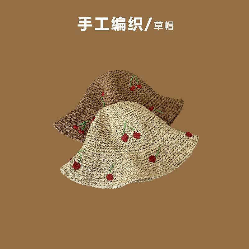 韓国版の手作りのさくらんぼは甘くてかわいい麦わら帽子です。