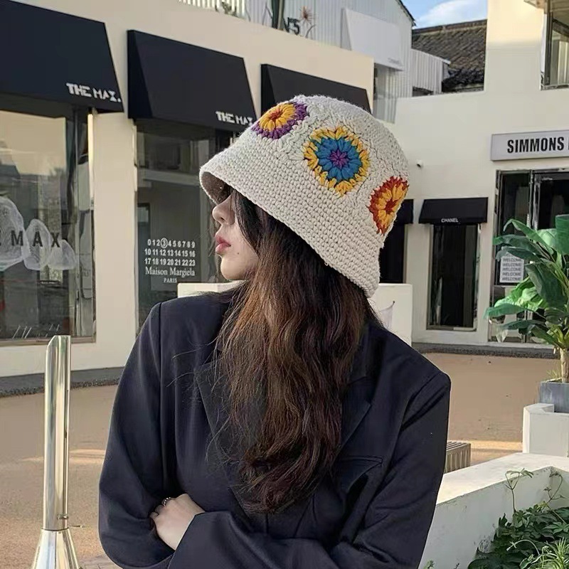 日本系のレトロな透かし彫りの花の手作りニットの盆帽