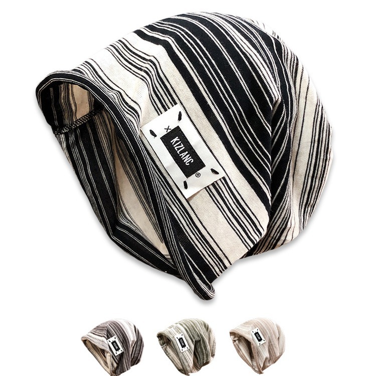 夏の薄い綿糸の山の帽子の女性の日本のストライプは布のゆったりした頭の帽子のネットの赤い潮の人を貼って街を出てファッション的に着ます。
