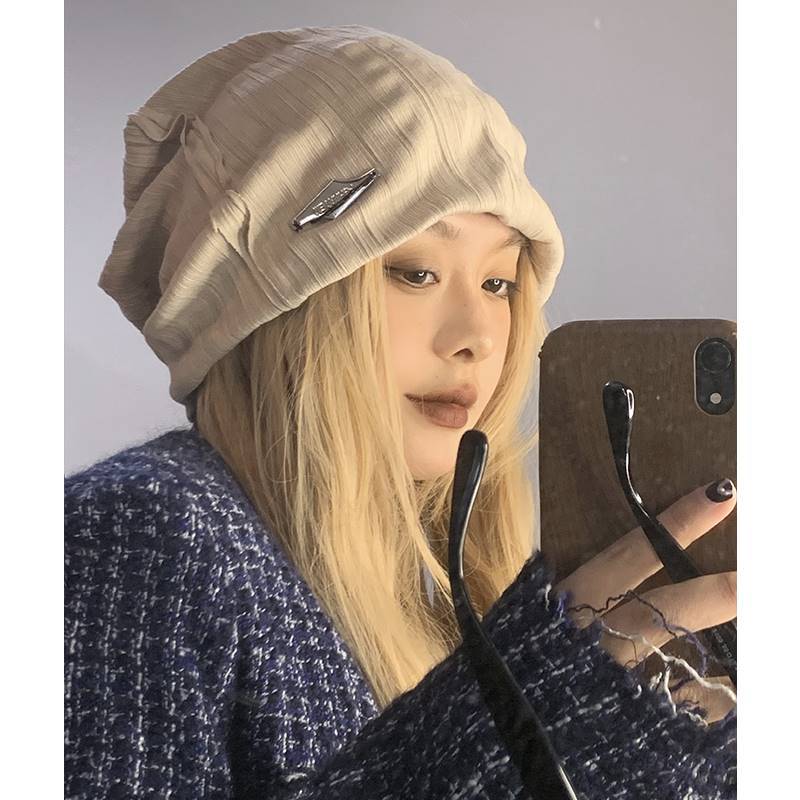 梅の色は白い帽子をかぶっています。日本のファッションは冷たい帽子を積んでいます。