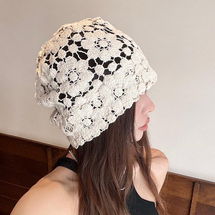 日本の手作り花中空パイル帽子女性のための春と夏の薄いターバン帽子甘い包頭帽子ファッショナブルなプルオーバー帽子