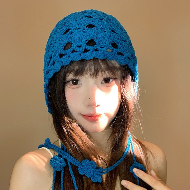 手織り中空花包頭防寒帽子女性の夏通気性ファッションボヘミアンニットプルオーバー帽子