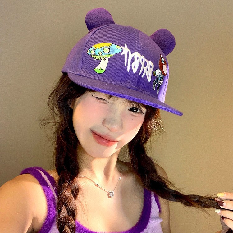 かわいい漫画紫色の休学クマ平つば野球帽女性の夏のニッチトレンドホットガール y2k アヒルの舌帽子