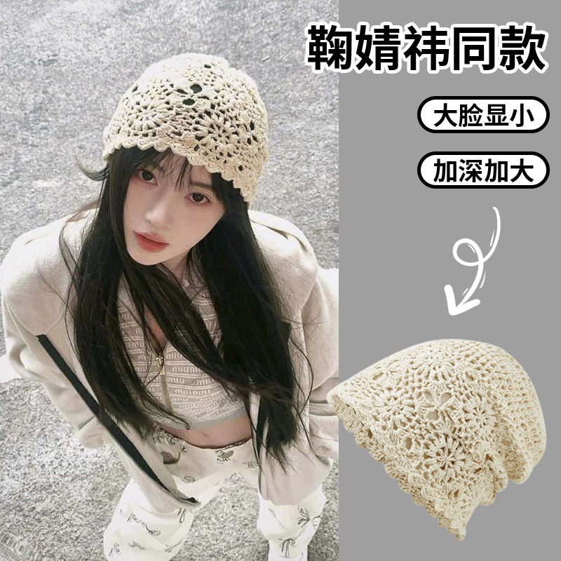 鞠婧は同じタイプのニットの透かし彫りの帽子の女性の夏の薄い金の大きい頭の周りに顔の小さい文芸の百合の山の帽子を現します。