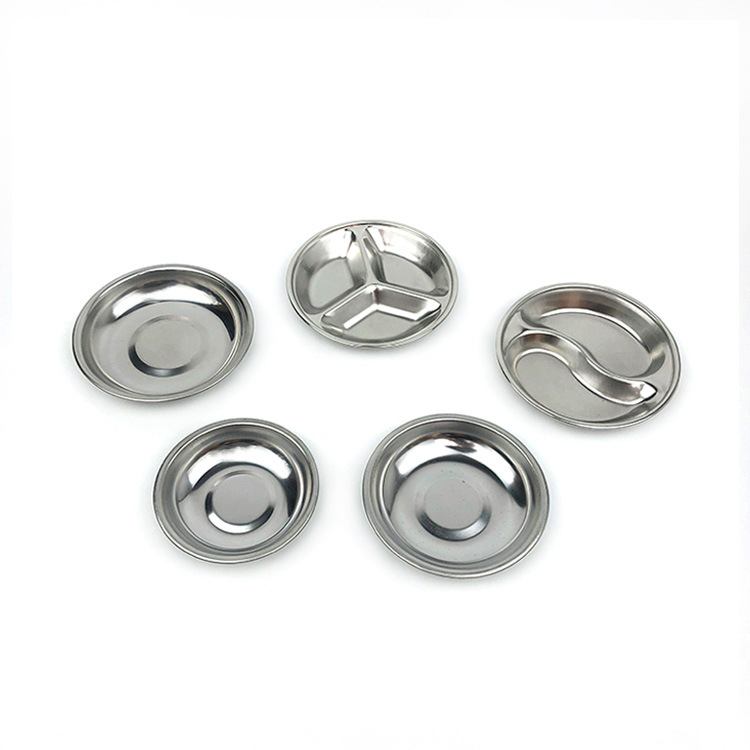 ステンレスの調味料皿の小さい皿のレストランの調味料の油酢の丸い小皿の双格の3格の調味料は水の皿をつけます。
