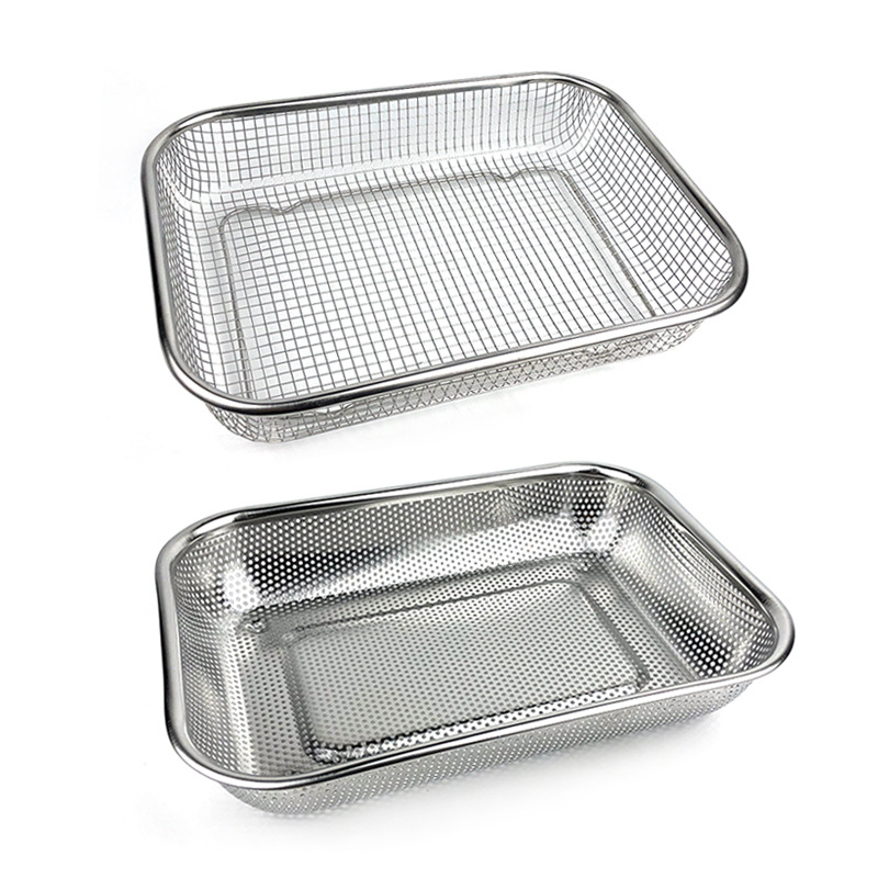 ステンレスの野菜を洗うたらいの水たまりのかごの四角形はたらいの箸のかごの台所を漏らします。