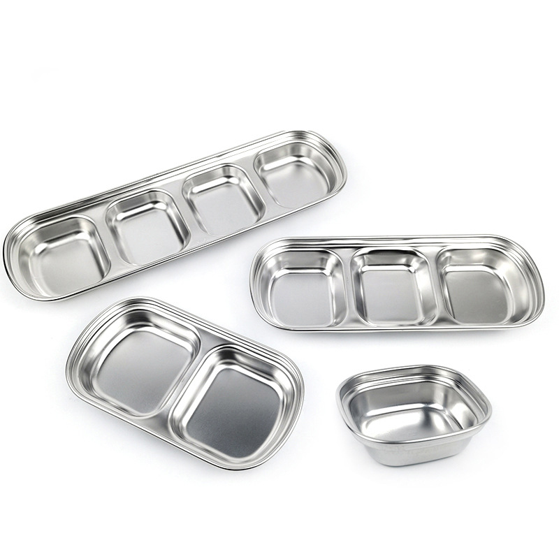 ステンレス調味皿双格三格皿軽食焼肉ディップ多格韓国式醤油酢調味料皿