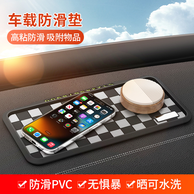 車の滑り止めマットチェック柄車の中央制御収納マット高温耐性チェック柄洗えるPVC車の滑り止めマット