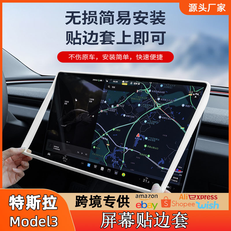 テスラmodel 3/yナビゲーションスクリーン保護カバーシリカゲルフレーム中制御部品車載衝突防止保護フレームを適用