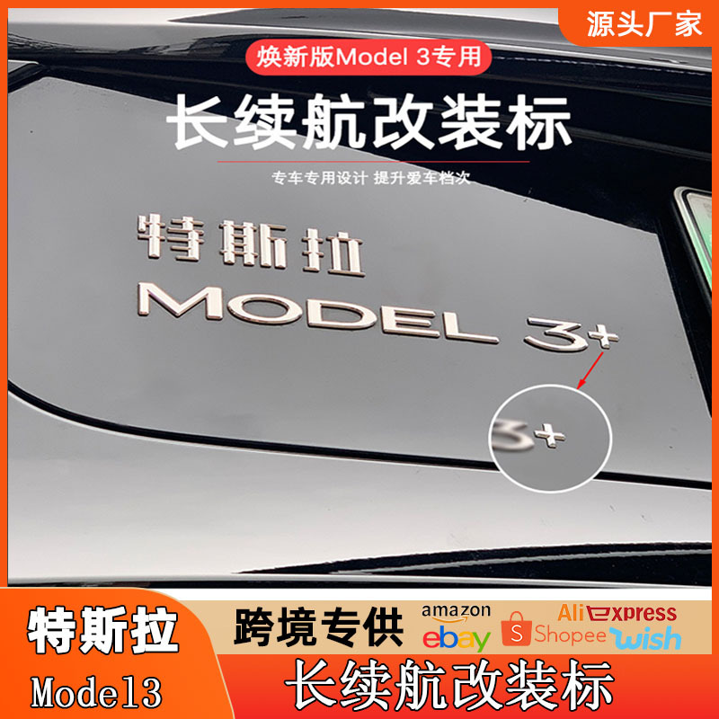 熙新版model 3尾標を適用して長い航続改造標テスラ外部改造運動部品を改造する