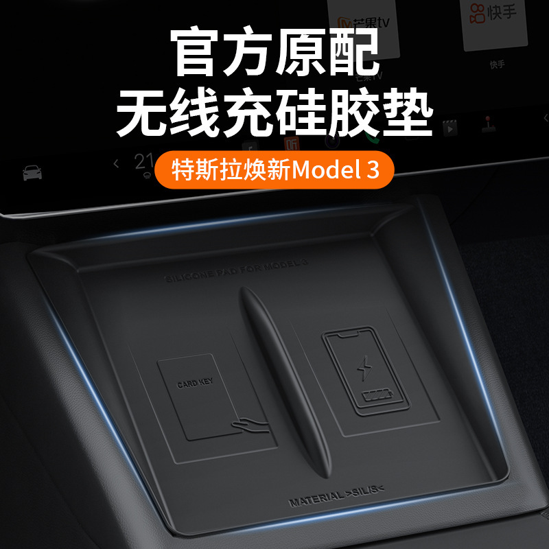テスラ熙新版model 3中制御無線充電滑り止めマットのアップグレード版シリコン保護マットを適用します。