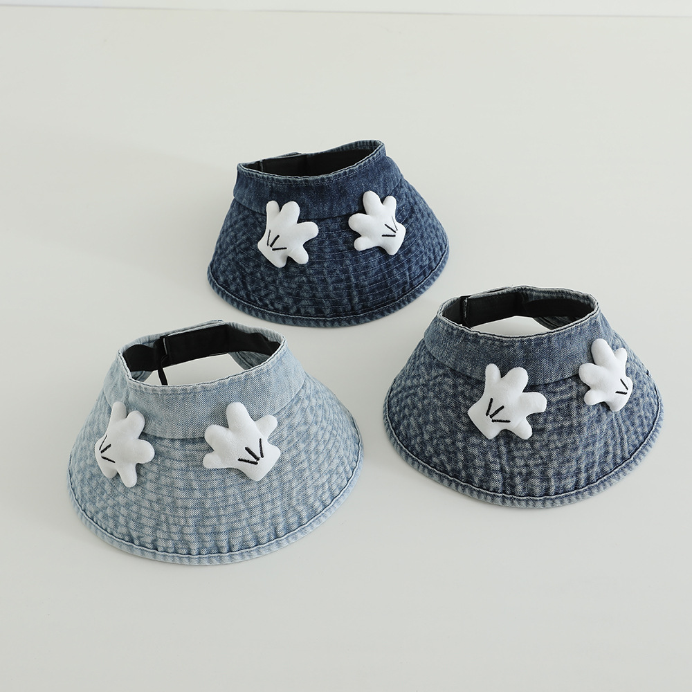 252-6歳 ウォッシュドデニム 中空シルクハット 子供用帽子 ミッキーハンド 大きなつばの中空シルクハット ベビー夏用アウトドアハット