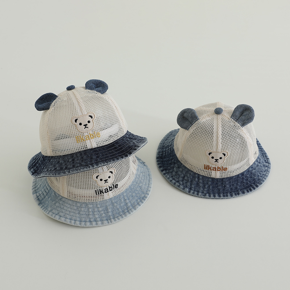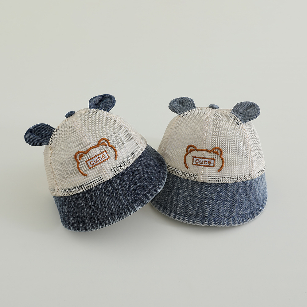 子供用帽子夏通気性メッシュクマ耳デニム大きなつば帽子日焼け防止ひさしキャップ男性と女性の赤ちゃん用