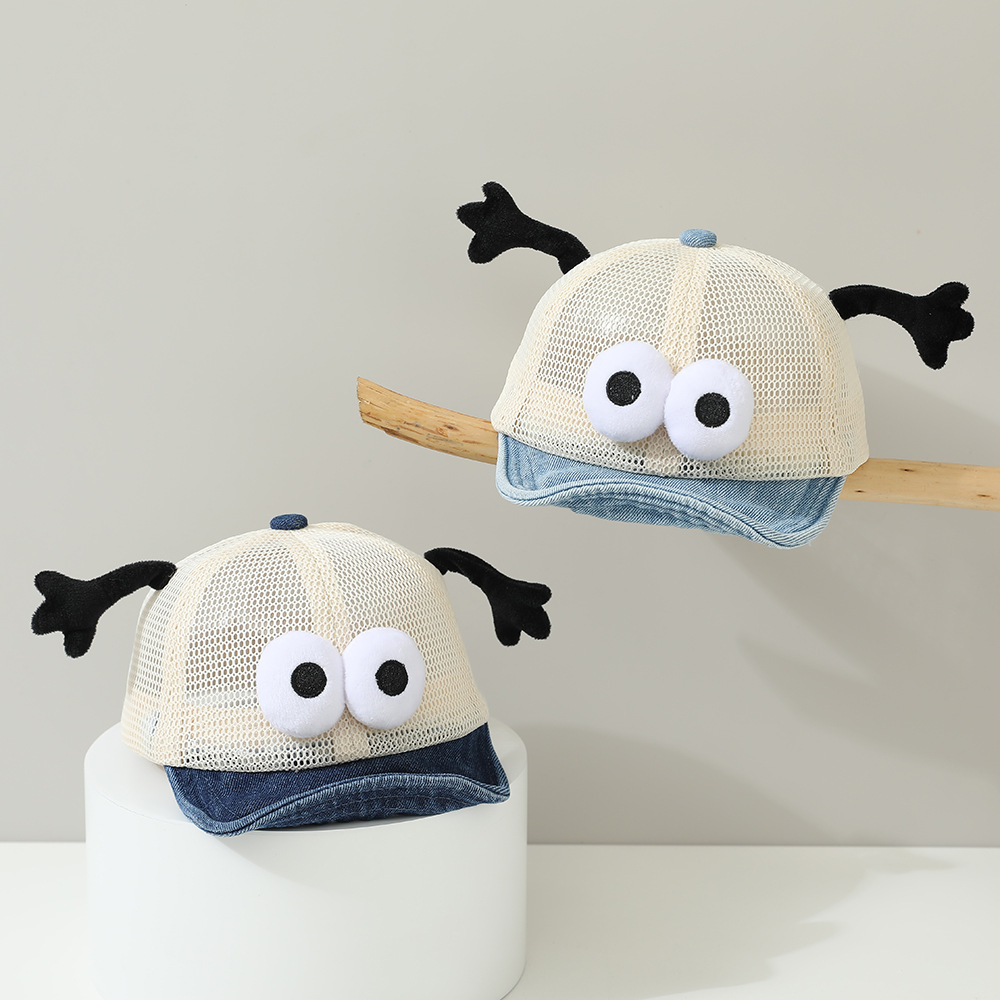 子供用日よけ帽子、夏用通気性フルネット面白い目ベビーソフトつば帽子大きなつばベビー旅行用日よけ帽子