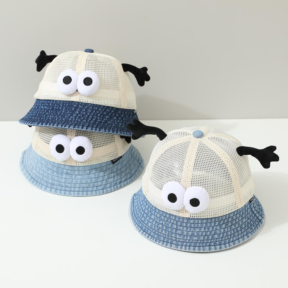 子供用日よけ帽子、夏用通気性フルネット面白い目ベビー漁師帽子大きなつばベビー旅行用日よけ帽子