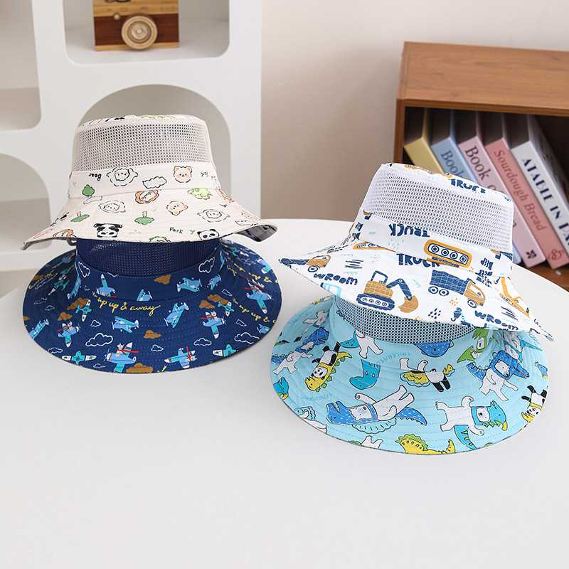 プリント子供漁師帽子夏の新しい大きなつばサンシェードメッシュ帽子ファッション漫画動物盆地帽子クロスボーダー