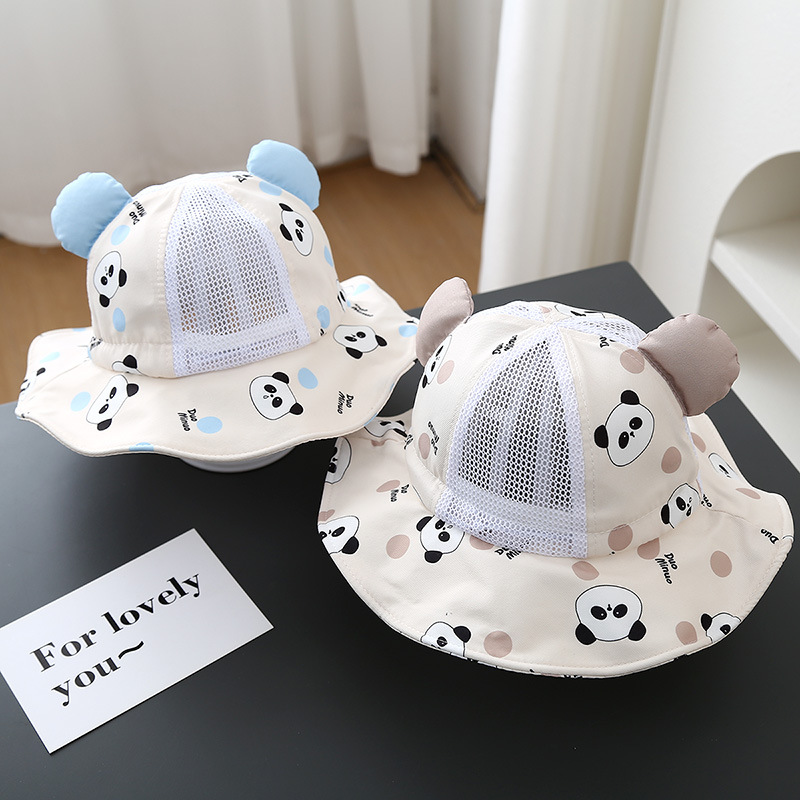 子供用帽子夏薄い日焼け防止通気性メッシュ大きなつば漁師帽子パンダベビートラベル盆地帽子