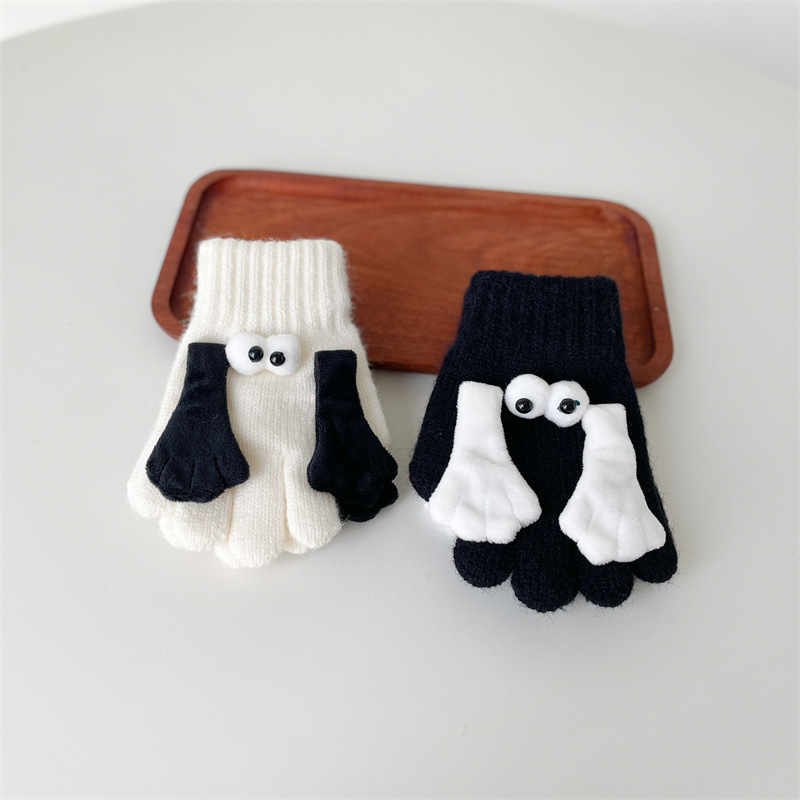 ディザトーン同型児童が手をつないで保温手袋がかわいいのは目の冬の毛糸ニット防寒五本指手袋がおかしい