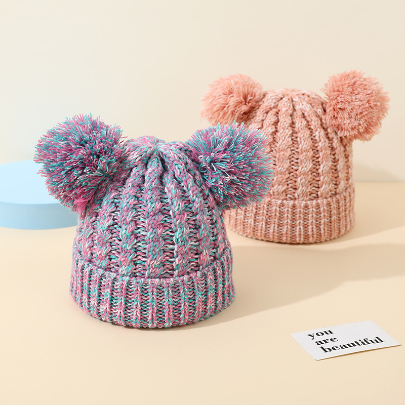 国境を越えたアマゾン冬の帽子赤ちゃんニット帽国境を越えた毛糸帽子供の双毛玉二色毛糸帽耳保護