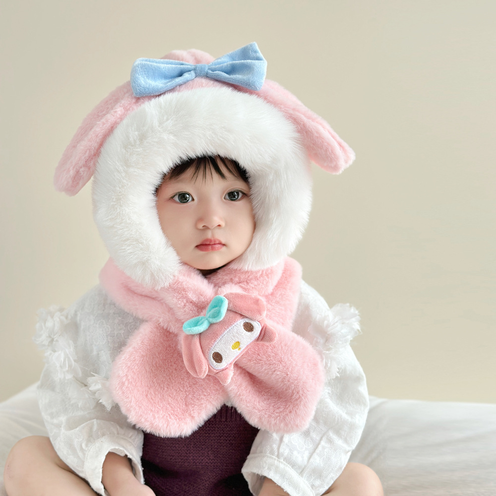 子供のぬいぐるみ帽子かわいいアニメ帽子冬は保温保護耳帽子マフラーのぬいぐるみ2点セットを厚くした