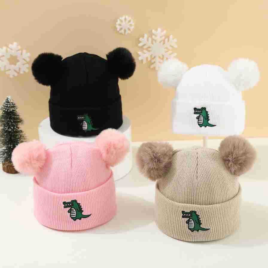 外国貿易アマゾンクロスボーダー赤ちゃん毛玉恐竜毛糸帽子子供ニット帽子漫画防風帽子かわいい恐竜