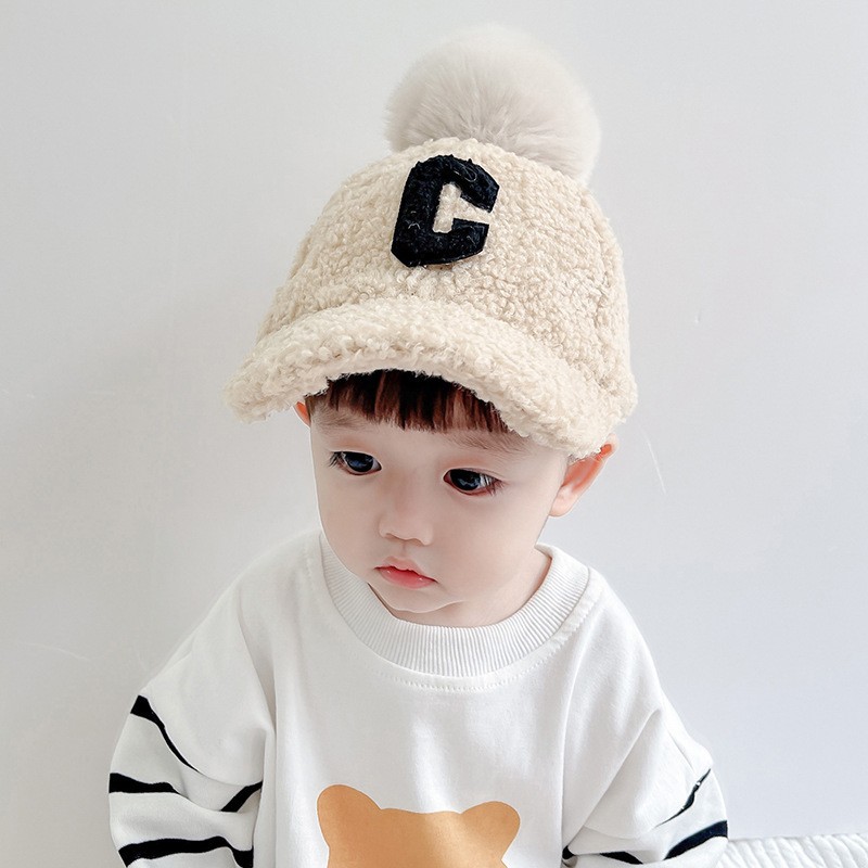 新しいファッションcアルファベット子供野球帽冬子供保温帽子子羊の赤ちゃん毛玉ハンチング