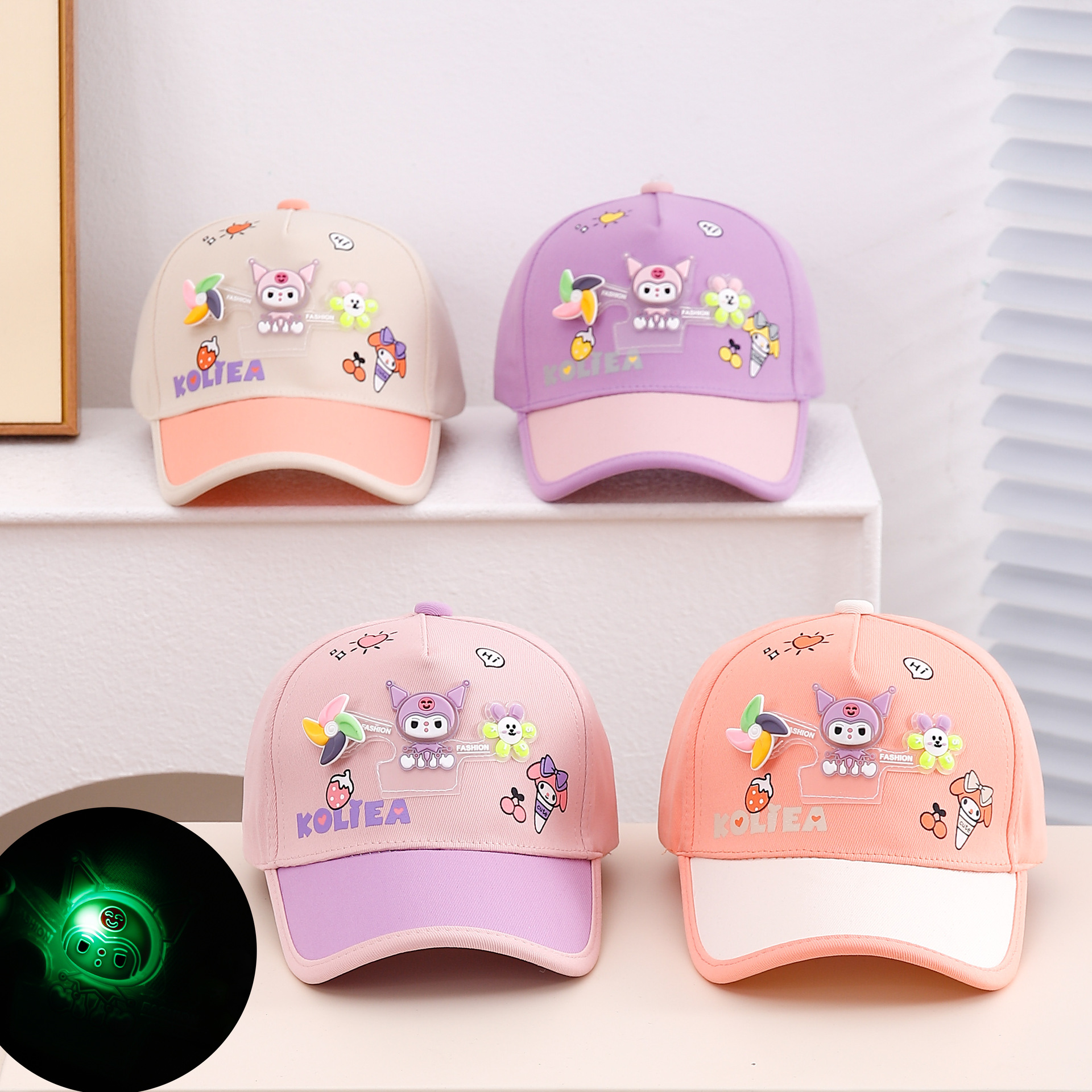 25新型の2-6歳の韓国の子供のアヒルの舌の帽子の野球の帽子は明かりをつけます。