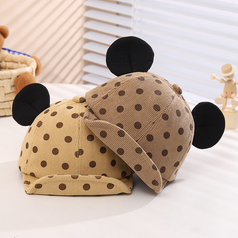 赤ちゃんの帽子秋冬韓国版漁師の帽子のプリントの丸い点の男女の子供の日よけの帽子のコーデュロイの柔らかい縁の帽子