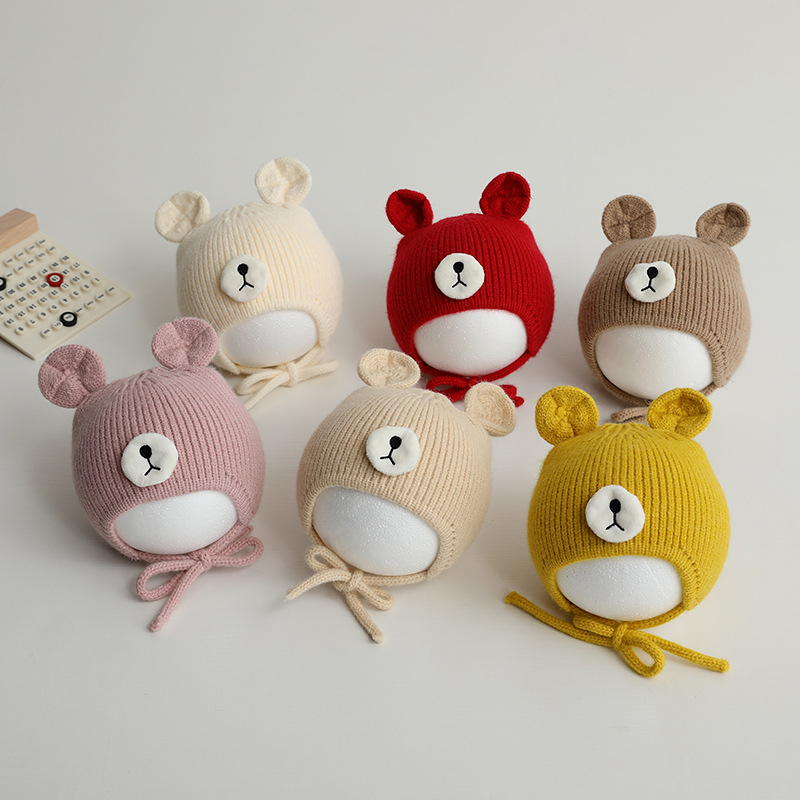 韓国の韓国の子供の帽子のニットの毛糸の帽子の乳首の毛の熊の毛糸の帽子の乳幼児の耳の冬の帽子