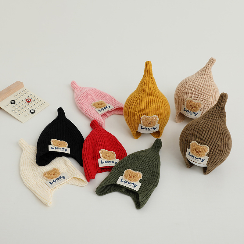 韓国の韓国の子供の帽子のニットの毛糸の帽子の先の耳の熊の毛糸の帽子の乳幼児の耳の冬の帽子